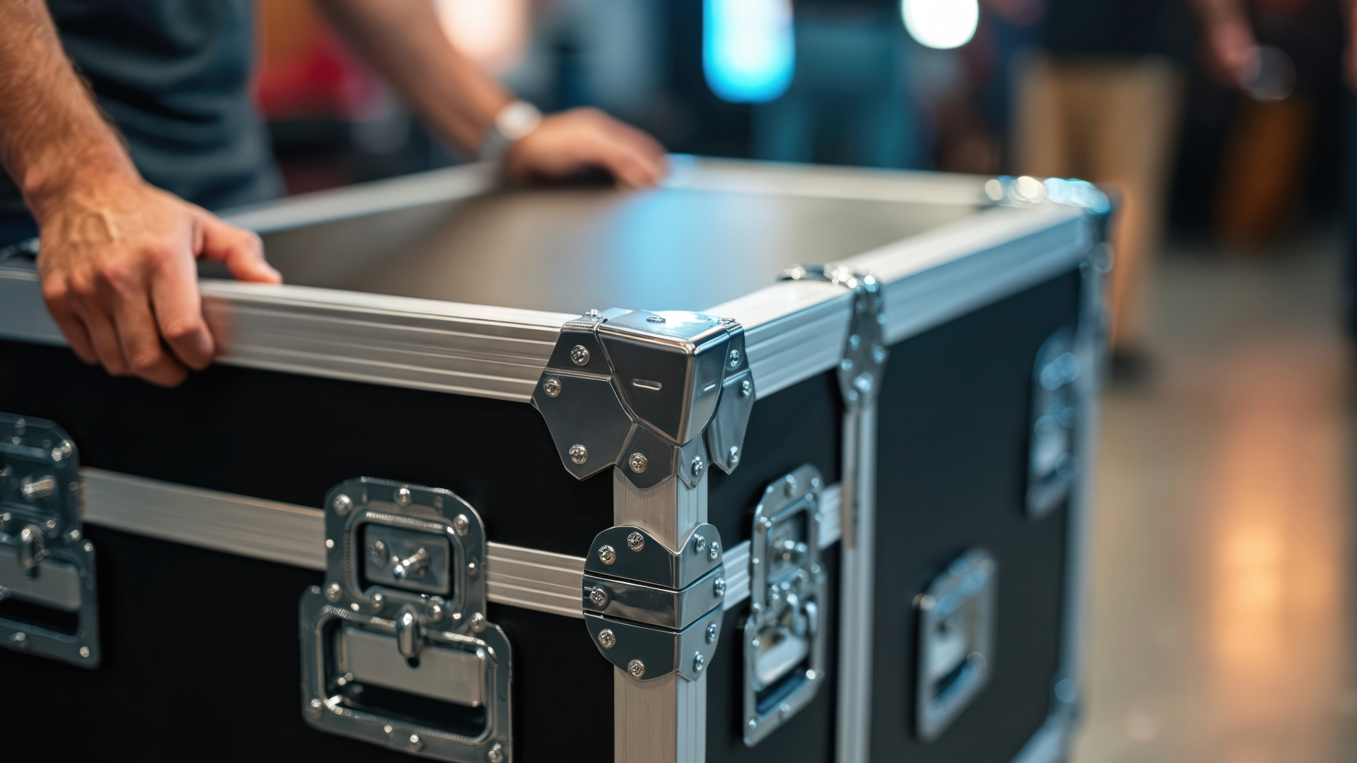 Traditional: Break down coffee table, pack up coffee table materials.